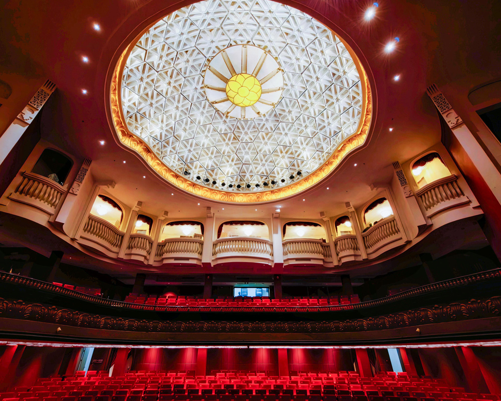 海珠大戏院始建于1902年(原名同庆戏院,1904年更名),位于广州市越秀区长堤大马路292号,是广州现存历史最悠久的剧场之一。2025年,海珠大戏院进行全面升级改造,并以“东有大剧院,西有大戏院”为战略定位,以“沧海流珠”为设计理念,通过重新规划建设,聚焦18到40岁的年轻受众,打造内容丰富、互动性强、场景可千变万化的无边界舞台,让百年老字号影院的传统空间赋予观众新的感官体验。同时,通过引进话剧、歌舞、脱口秀、戏曲等演出项目,复兴广州戏剧文化,形成珠江边上广州戏剧文化“双地标”,使其能够更好地完善广州戏剧文化产业布局,丰富群众精神文化生活,提升城市文化气质。